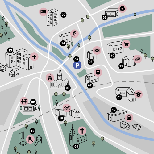 | • | Nua ein la scola, la baselgia, las stizuns, la posta, la plazza da giug, il spital, ina buna ustria? |